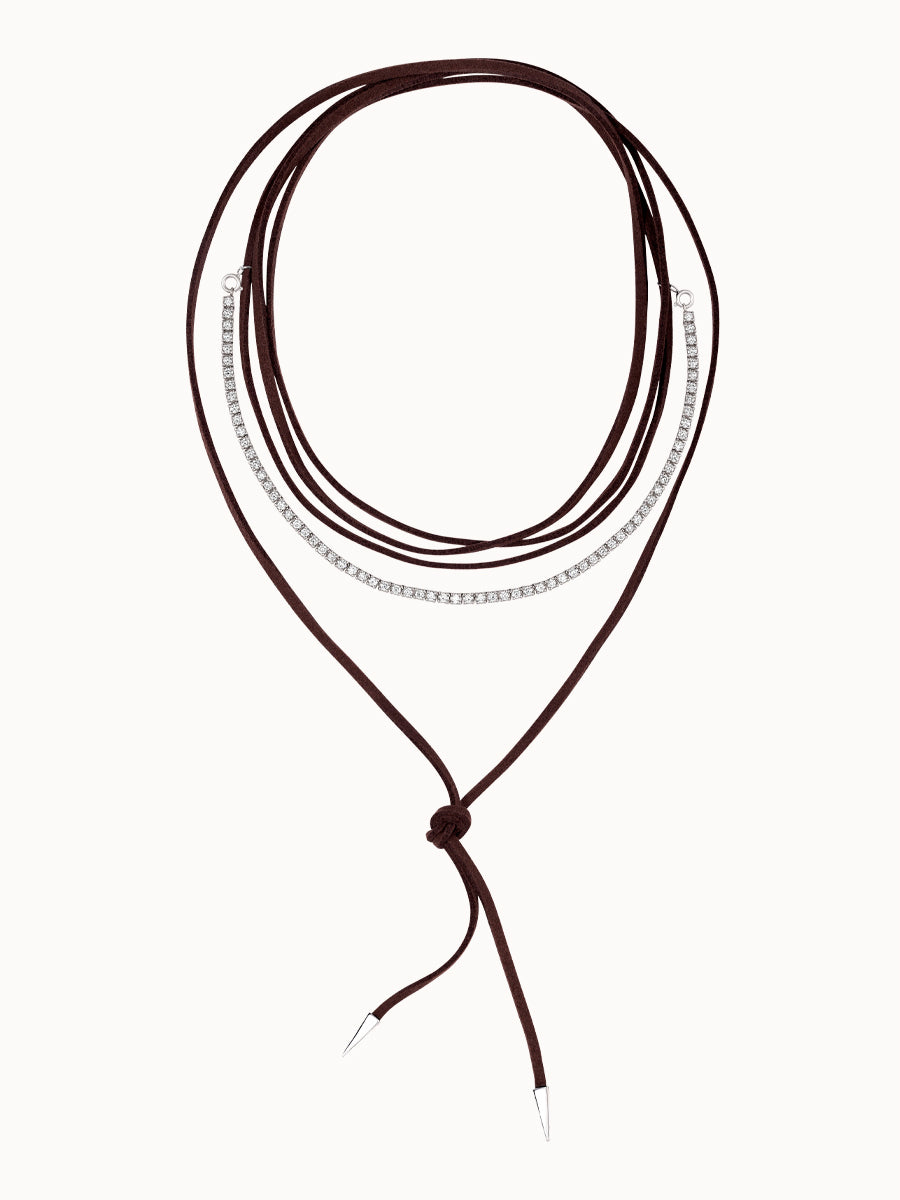 Um conceito inovador da W Rassi: a união do luxo da meia riviera em Ouro Branco 18k e Diamantes, com a casualidade do couro. Essa joia permite versatilidade de uso: com courinho ou com corrente. Um acessório sofisticado que se adapta a diferentes estilos, com Diamantes que irradiam brilho e elegância com o conceito do Agro.