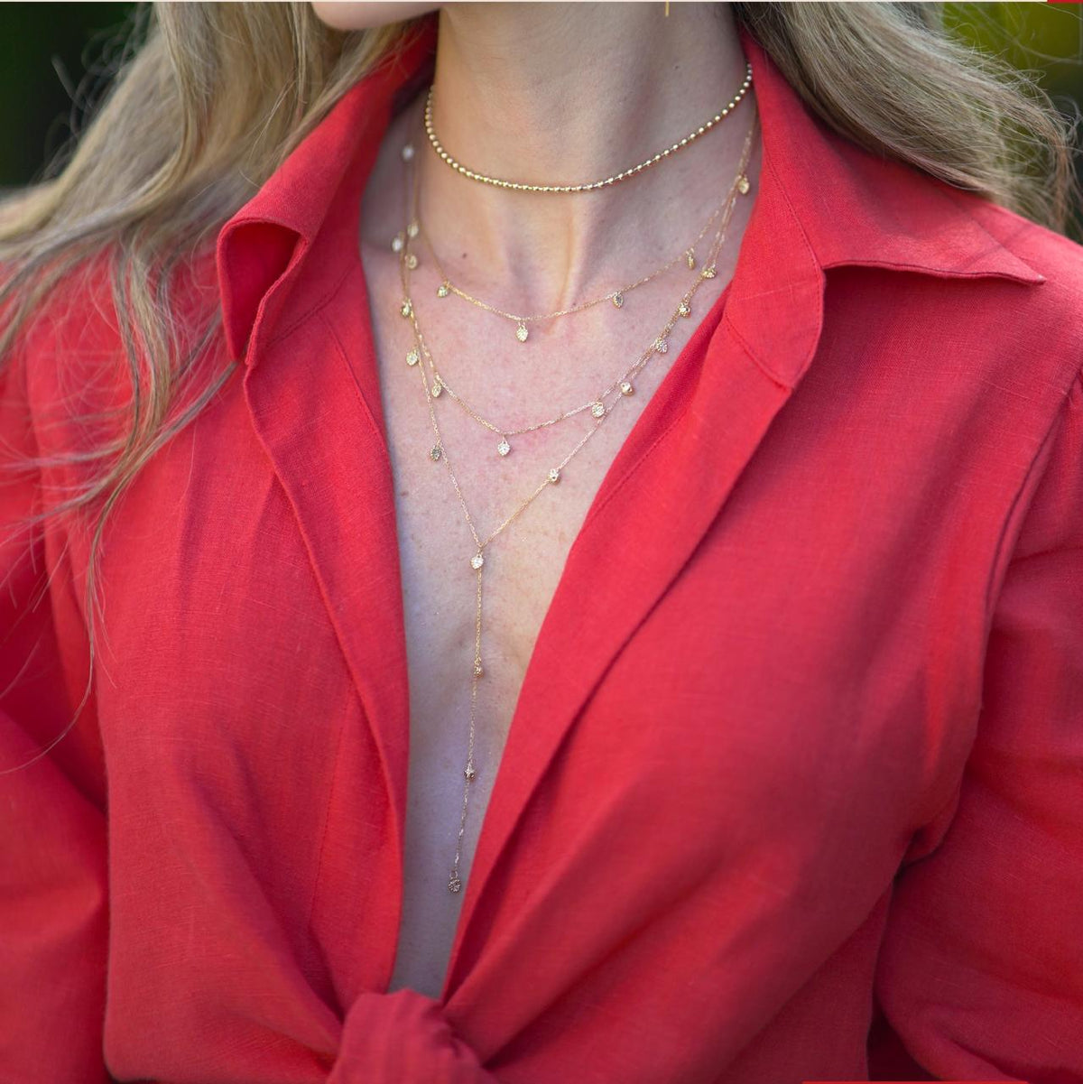 Eleve seu estilo com o colar gravatinha da coleção “Amor Eterno”, uma joia que mescla sofisticação e romance. Desenhado em ouro amarelo 18k e adornado com diamantes luminosos, este colar é a escolha perfeita para destacar sua elegância em qualquer ocasião. Um símbolo de amor que se adapta perfeitamente a você.
