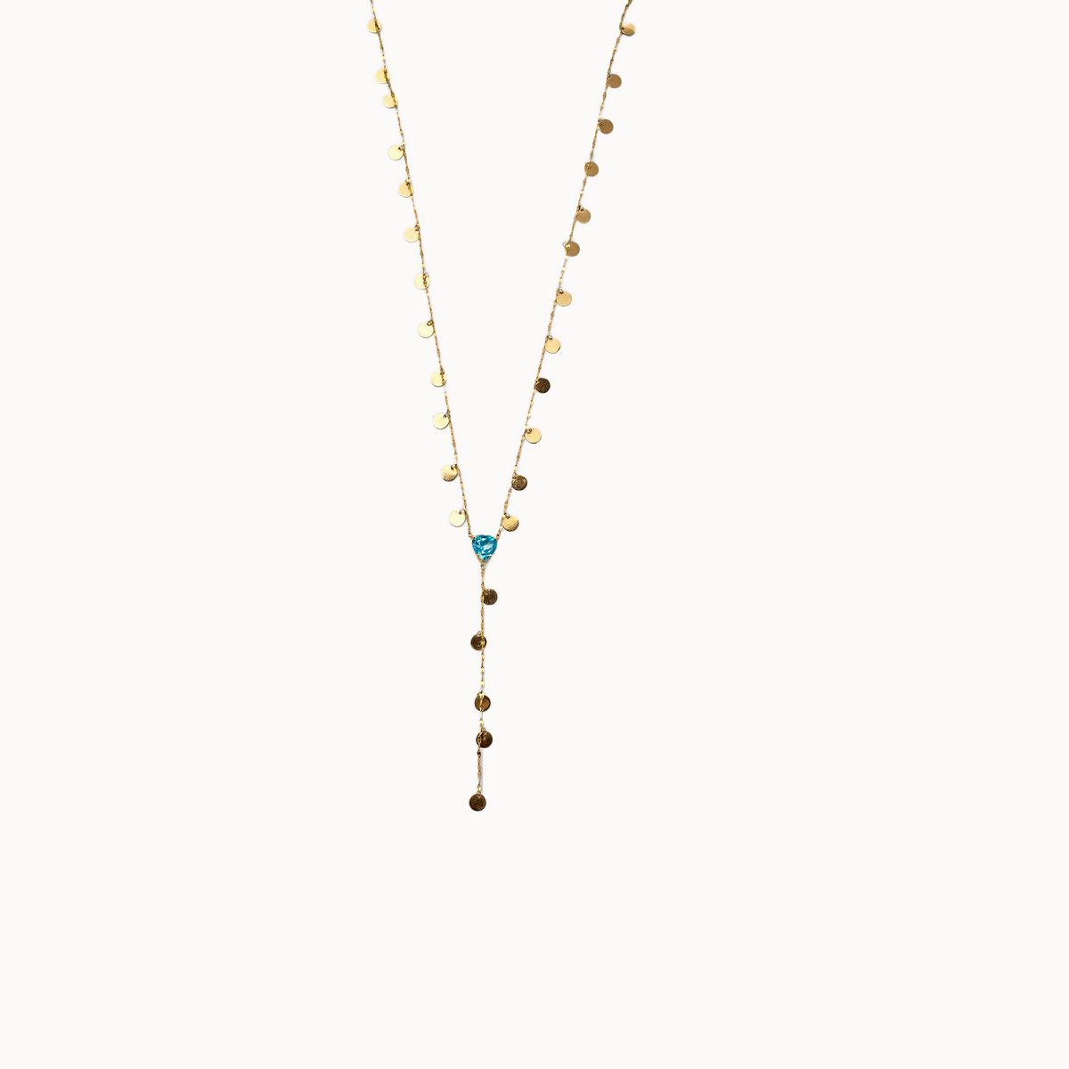 Colar Lariat Gravatinha Poa com Topázio Azul com lapidação Coração em Ouro Amarelo 18k