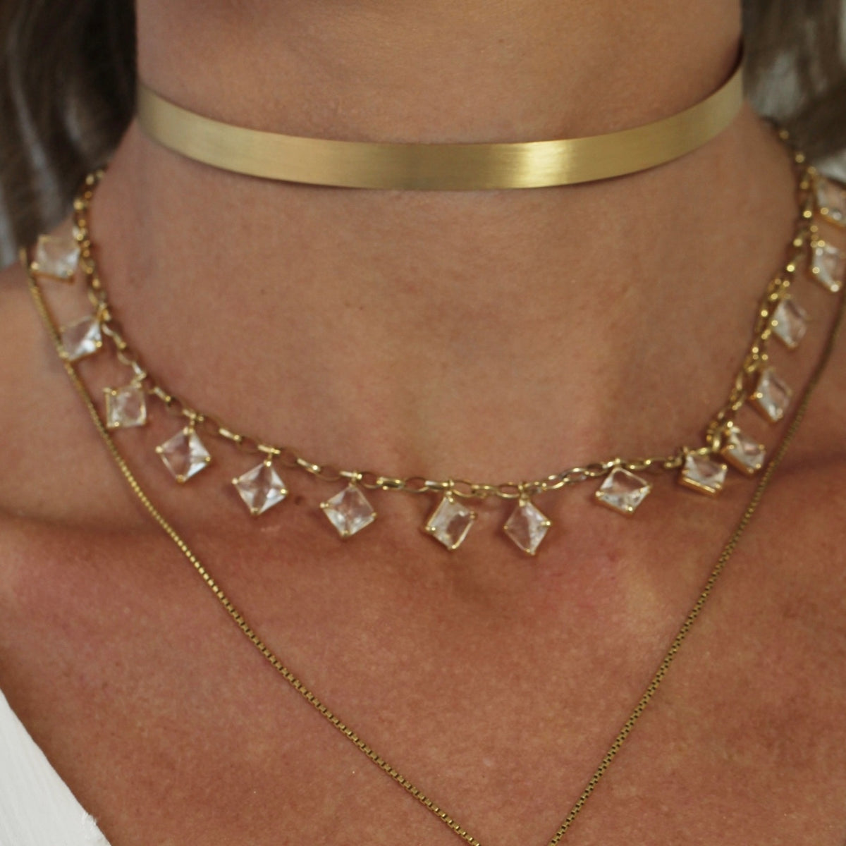 Explore a pureza e o encanto do nosso Colar Square com Topázio Branco, uma joia única em Ouro Amarelo 18k. Uma elegante combinação de simplicidade e sofisticação para realçar seu brilho natural.