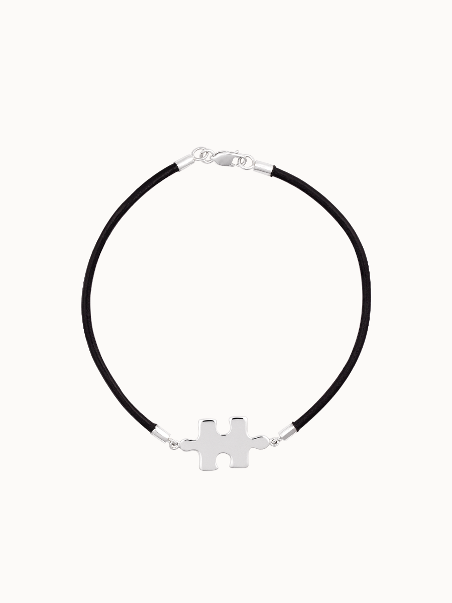 Pulseira Couro Puzzle Ouro Branco 18 K
