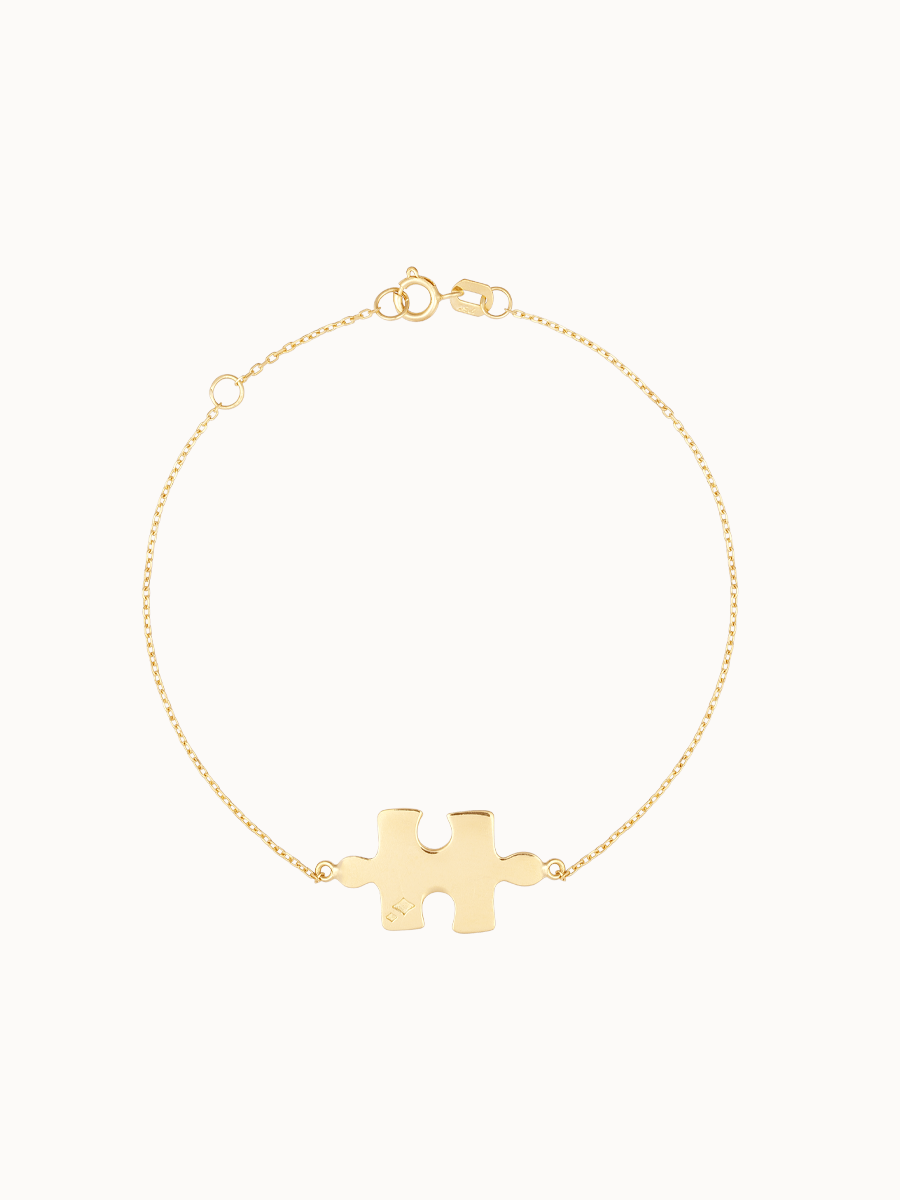 Adicione um toque de diversão e elegância à sua coleção de joias com nossa pulseira quebra-cabeça em ouro amarelo 18 quilates. Cada elo desta peça é cuidadosamente moldado, formando um encaixe perfeito que lembra a montagem de um quebra-cabeça. No centro, uma peça destacada em forma de quebra-cabeça, complementa este design único, elevando o visual com um toque de charme e originalidade.