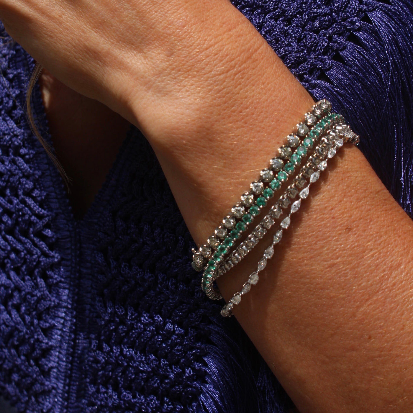 Pulseira Riviera de Diamantes com lapidação Gota e Navete em Ouro Branco 18k