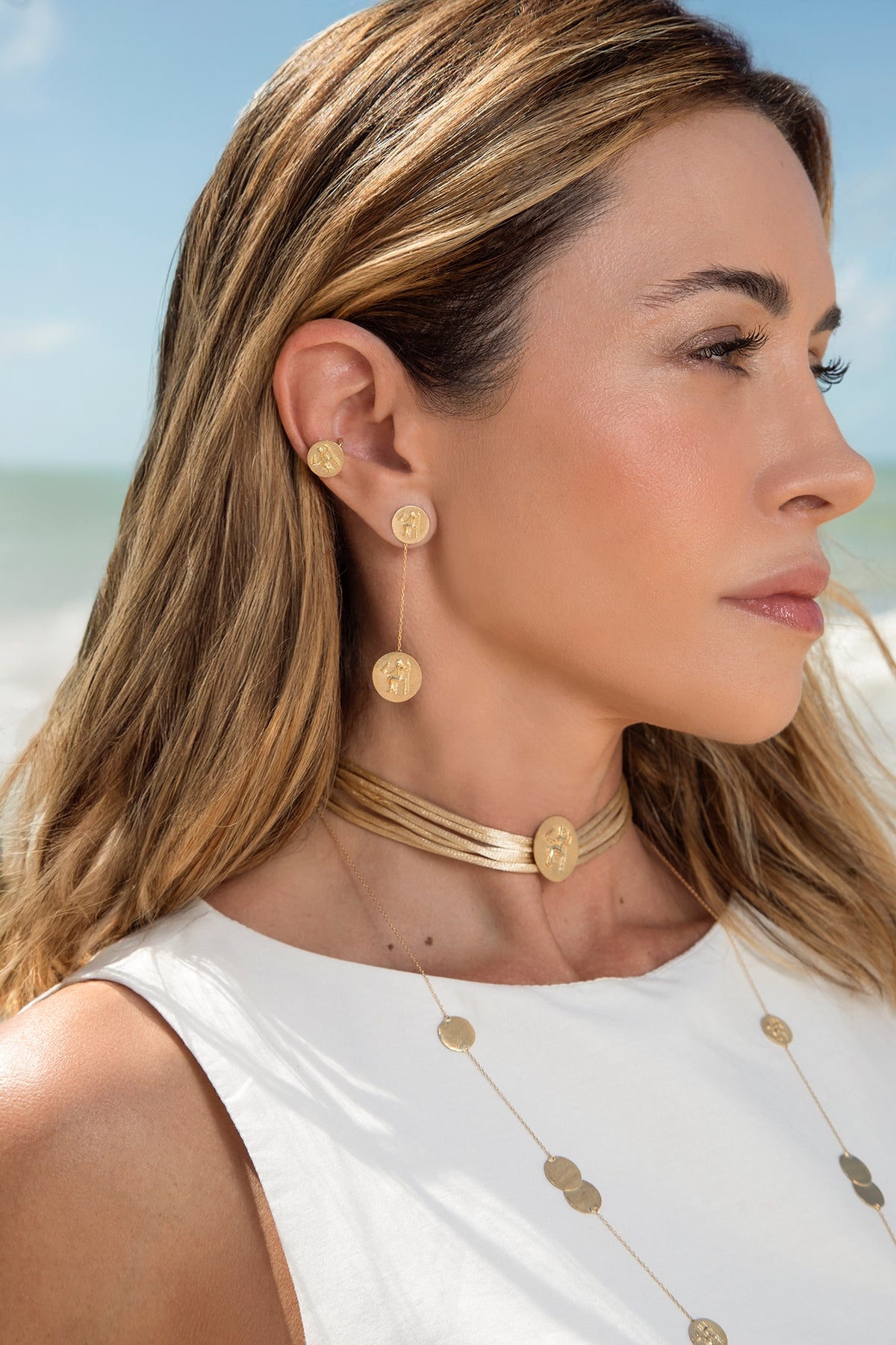 A força dos deuses eternizada em ouro. Brinco com relevo de deus grego em ouro 18k fosqueado; arte, história e sofisticação em um só detalhe.
